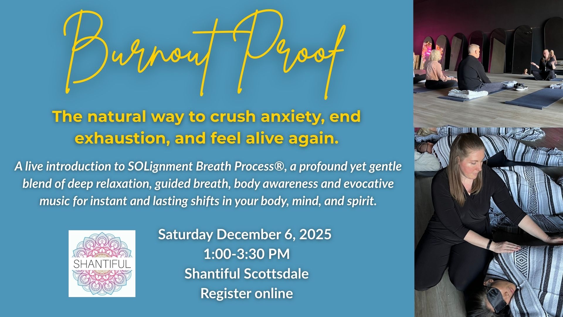 1:00pm-3:30pm | $33 (Use code SHANTIFUL to save 50% if register by Dec 4th at 5pm) | Hosted by Sarah Feeley of The Stress Resilient Leader